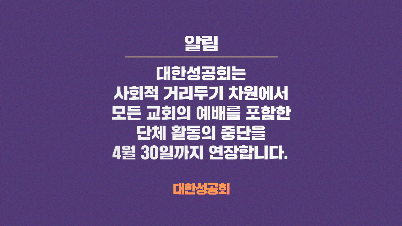 | 대한성공회 주일 예배 중단 2주 연장 (2020년 3월 28일까지) (0) | 2020.03.09 |